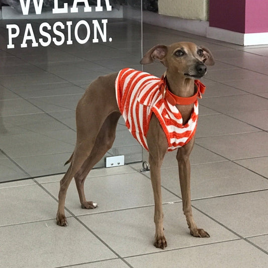 The items from My Pet Luxury Boutique in the Greyhound Clothing section have been specifically designed and crafted with their fit needs in mind, from the Italian greyhound to the greyhound. The clothes made for these four-legged friends are light and form-fitting, without restricting their movements. Attention to every single detail ensures a well-tailored and always impeccable fit.