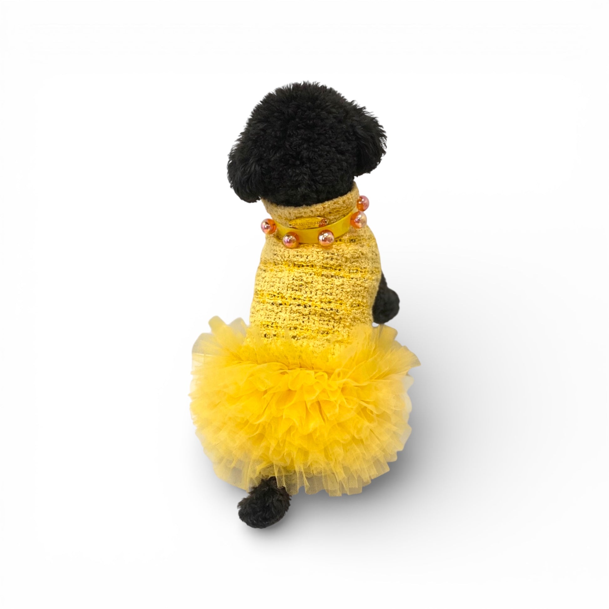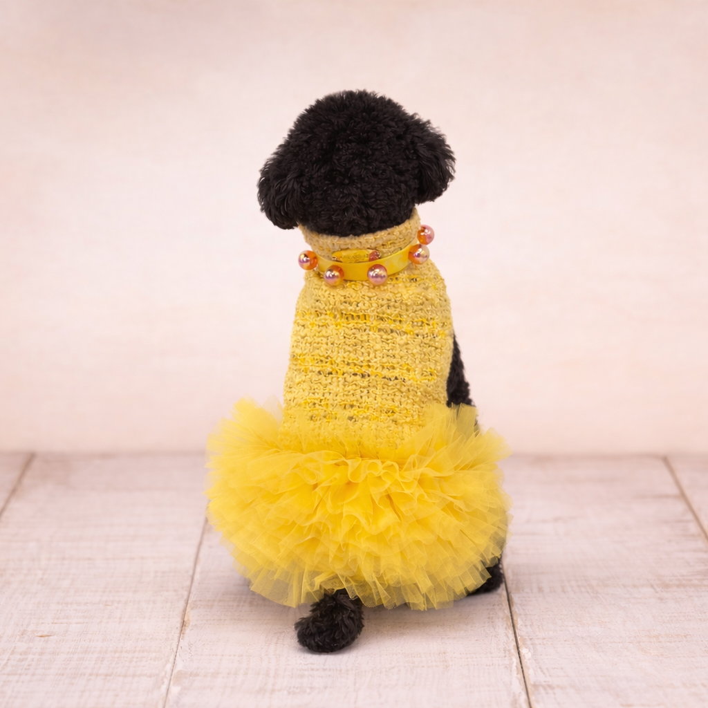 The crocheted fabric creates an elegant and breathable texture, perfect for ensuring maximum comfort for your dog. The dress stands out for its refined design and tailored fit, designed to hug your dog's body without restricting movement.