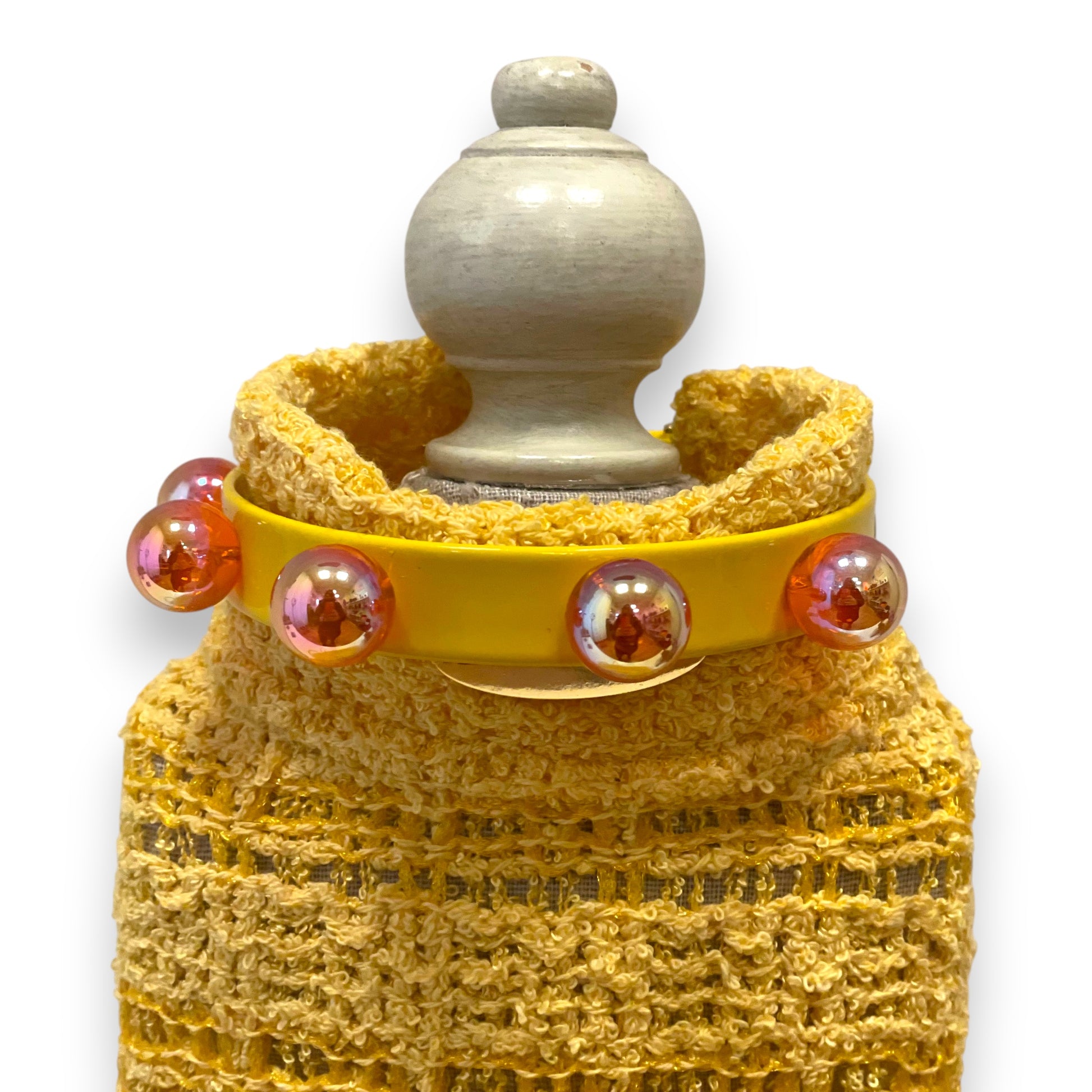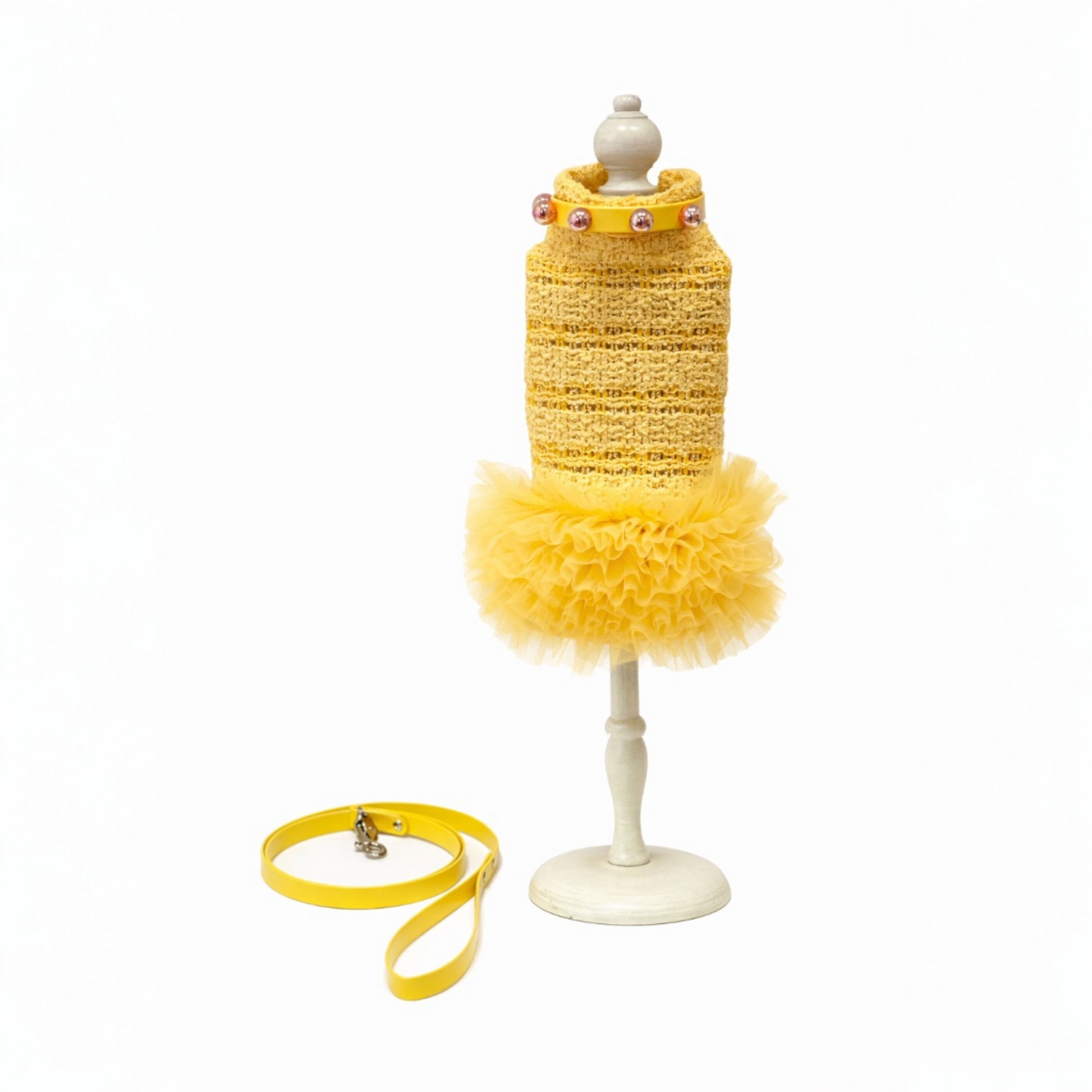 Don't settle for just a dress. Enhance your dog's beauty by pairing it with our exclusive line of beaded collars and leashes. This combination blends the elegance of crocheted lace with the boldness of studs for a unique and unmistakable look.
