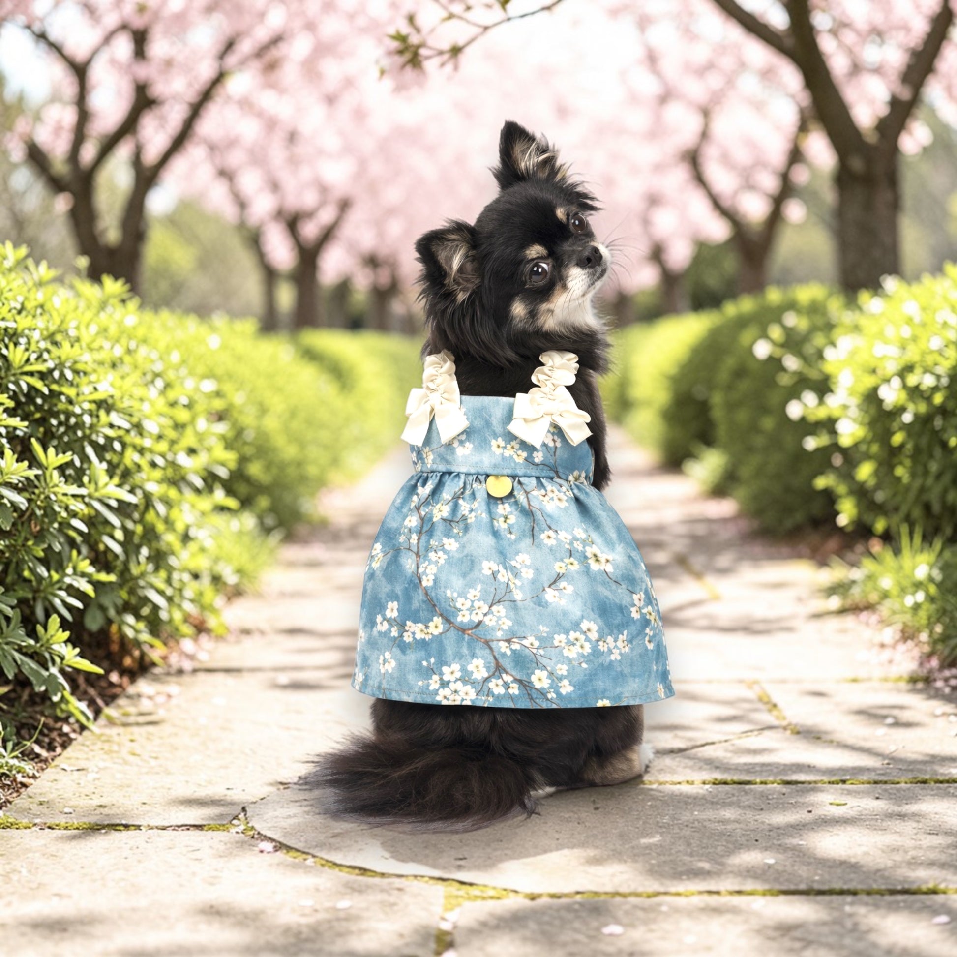 The Rêverie dress is a celebration of freshness and sophistication. Designed for those who desire a romantic and sophisticated look for their dog, this piece embodies the excellence of Italian canine tailoring , where every stitching tells a story of passion and attention to detail.