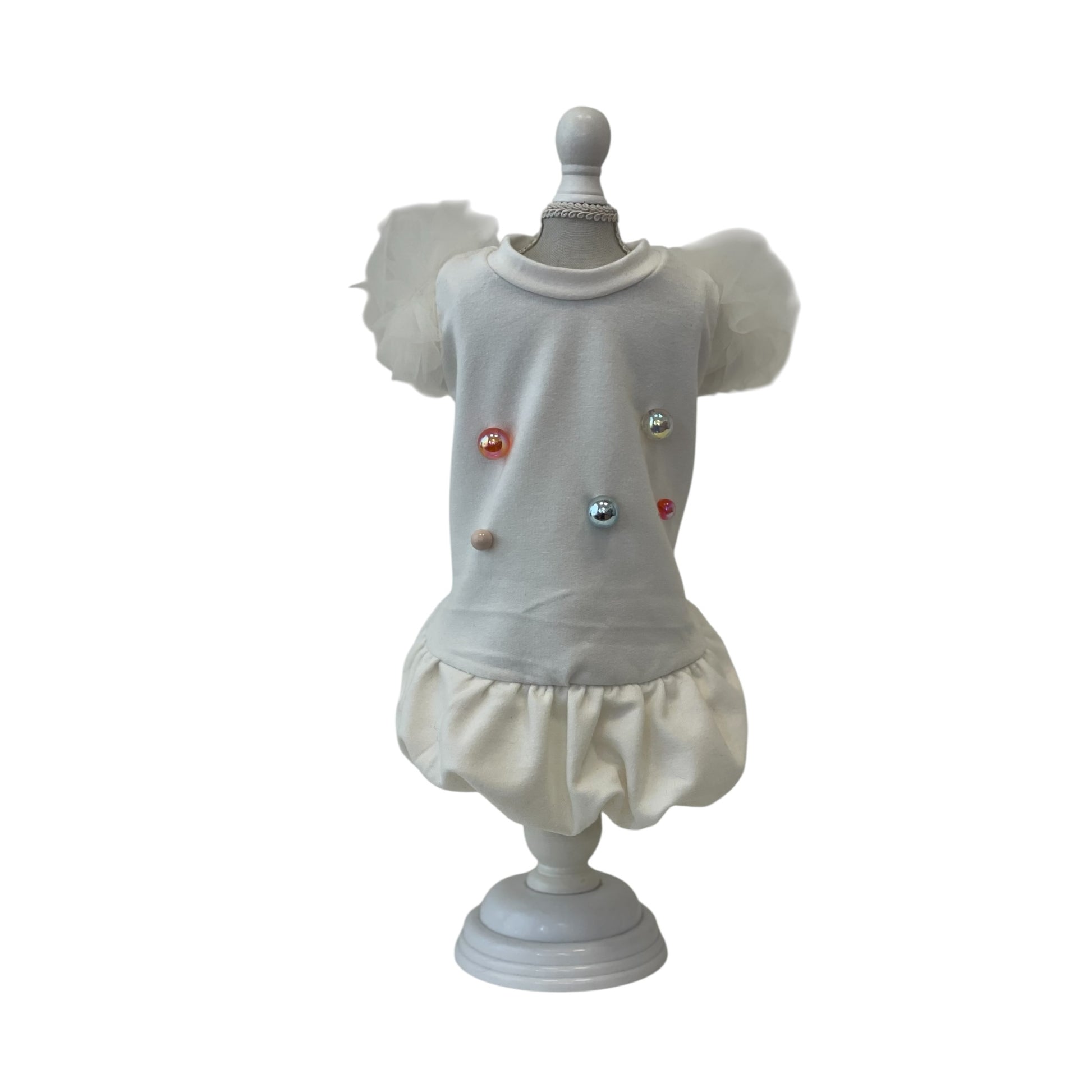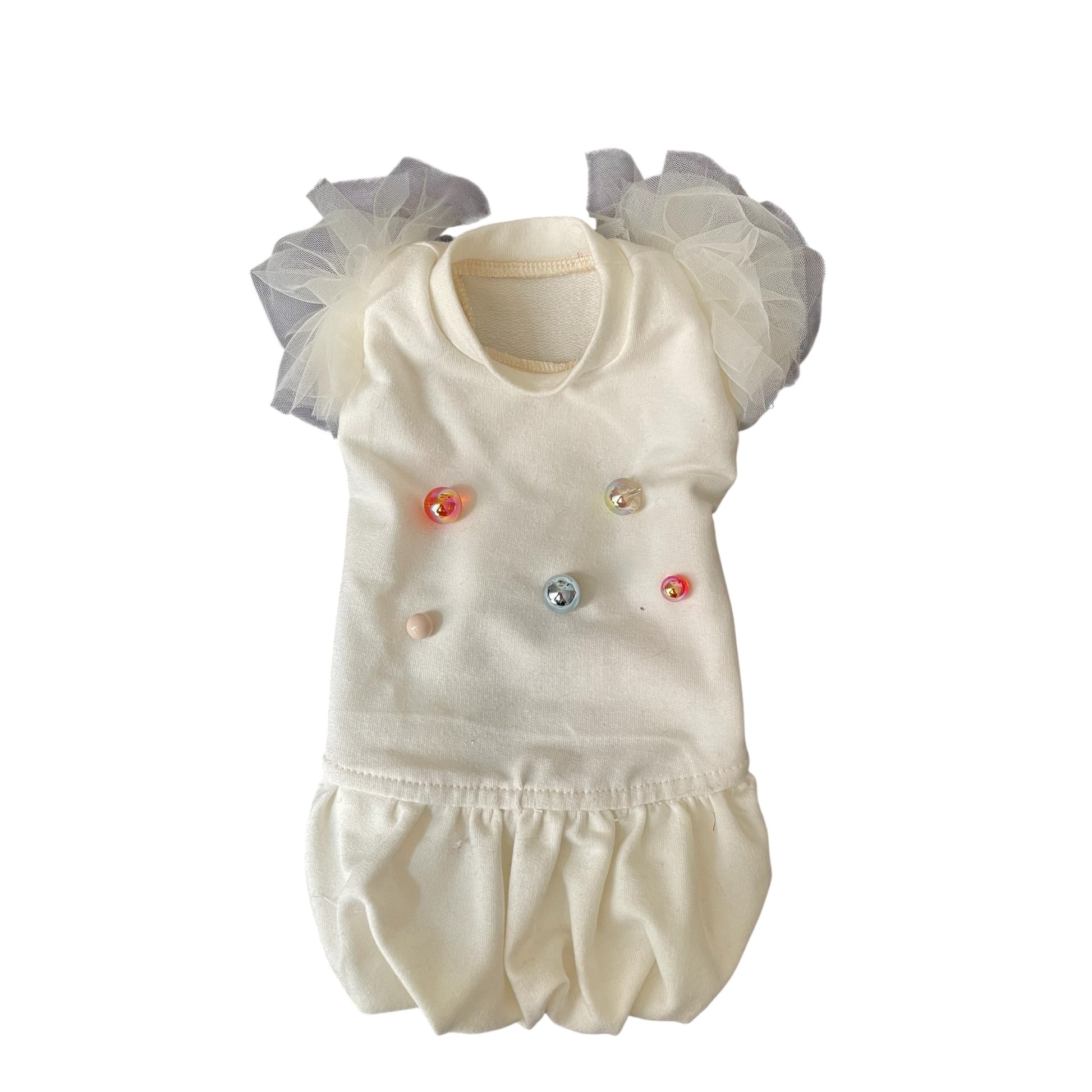 La felpa Les Boules e' realizzata in morbido cotone stretch con maniche rivestite di impalpabile tulle multistrato in tinta e impreziosita da borchie traslucenti di diversi colori per un look assolutamente glamour!
